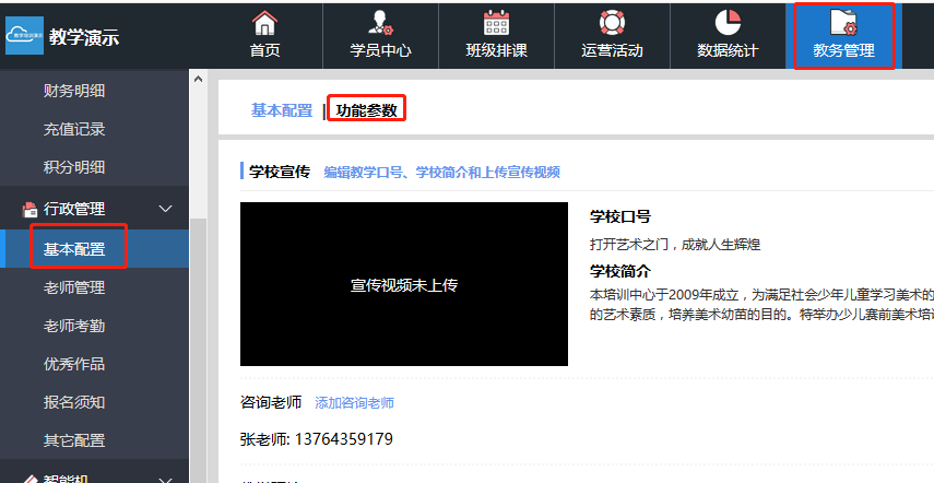 上传教学口号、学校简介