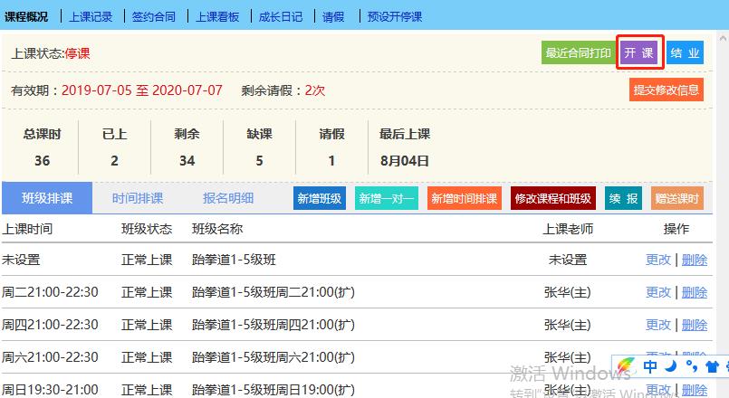 在“学员中心”里进入“上课学员”,点开需要停课/开课的学员,进入课程信息框里的“立即停课”(需要停课)/“立即开课”(需要开课)后提交。