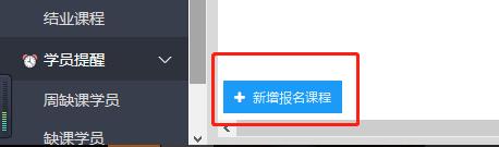 在“学员中心”进入“上课学员”,点开该学员后进入“新增报名课程”进行报课。