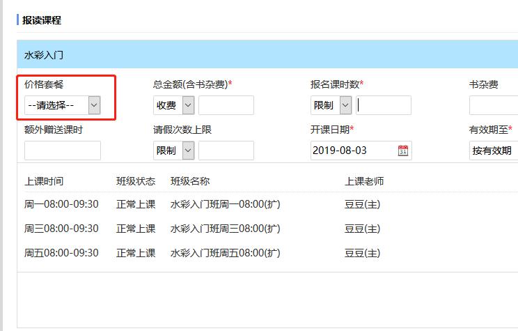 学员报名录入时直接应用课程套餐。
