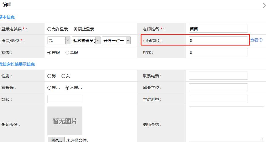 第五步:将老师微信小程序里的ID数字对应填写到“小程序ID”后的框里。