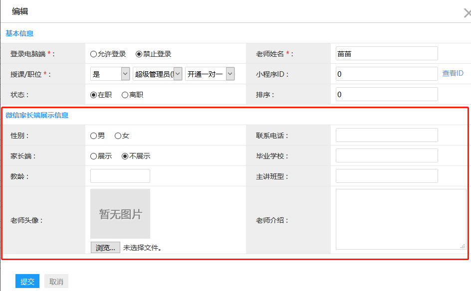 此步完善后会展示在家长端的“师资力量”的类目下。
