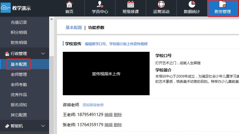 对外的咨询老师,展示在校区微官网,默认为开区表里提供的老师信息,可自行修改、添加或删除。