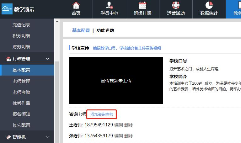 添加、修改或删除校区咨询老师