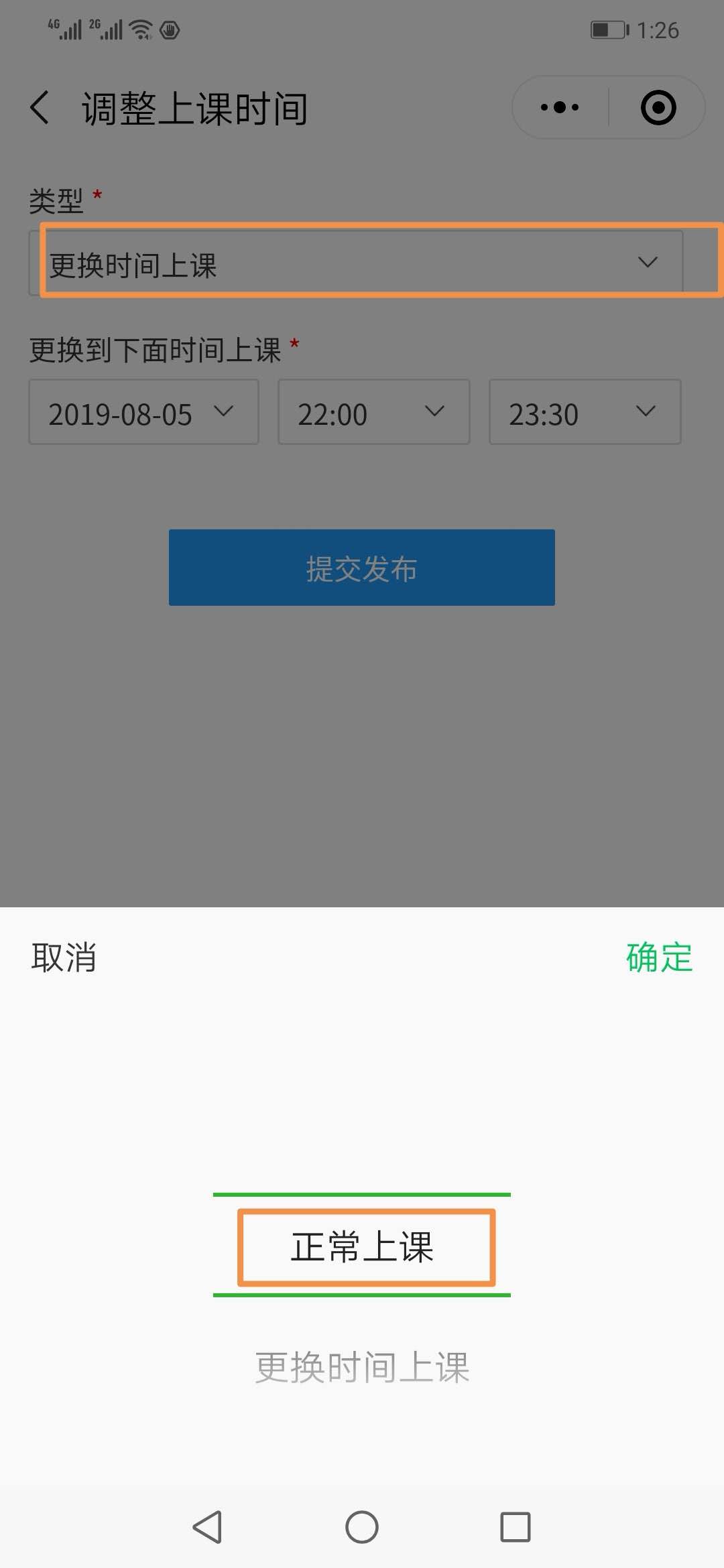 在“排班看板”里进入被调课班级,再进入“调整上课时间”,选择类型为“正常上课”后确定。