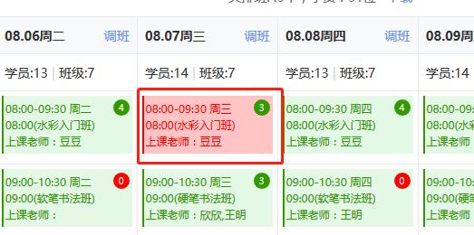在“排班看板”里进入调课当天日期后的“调课”,选择类型为“正常排班”后进入“保存”