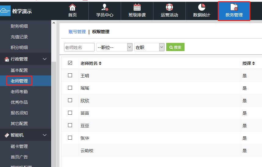 进入“教务管理”,“老师管理”。