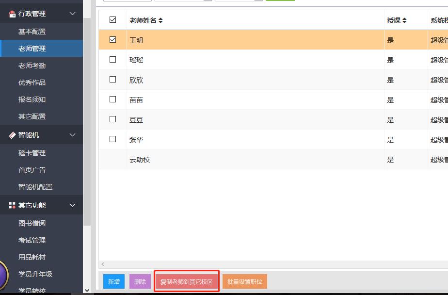勾选老师进入“复制老师到其它校区”。